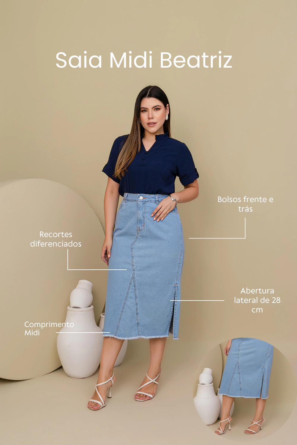 A Saia Beatriz foi criada pensando na mulher que valoriza elegância, conforto e versatilidade. Inspirada na atemporal Saia Thaisa, essa versão traz recortes diferenciados na parte frontal, adicionando um toque moderno e sofisticado ao design. É uma peça que transita perfeitamente entre o casual e o refinado, sendo ideal para diversas ocasiões.