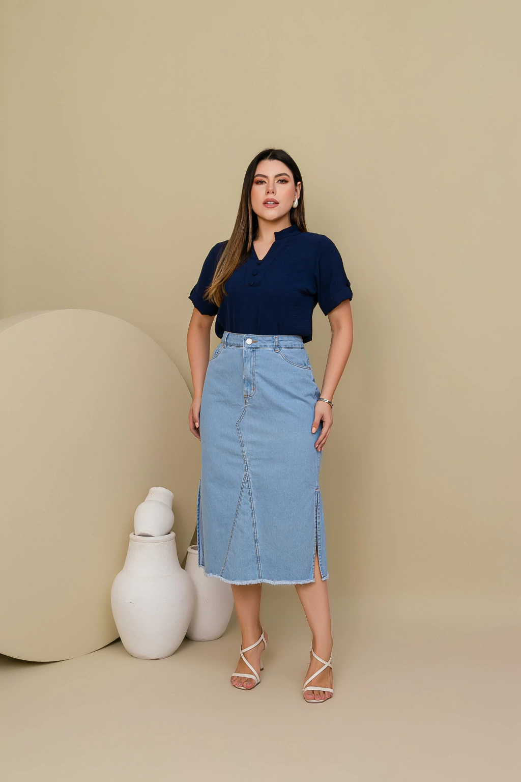 Disponível em duas lavagens clássicas, a Saia Beatriz combina praticidade e estilo: